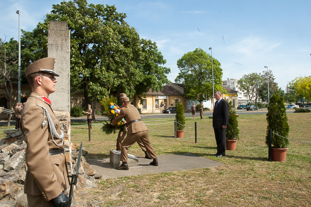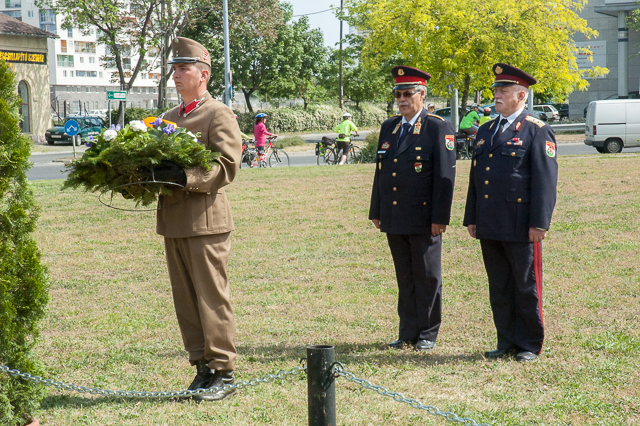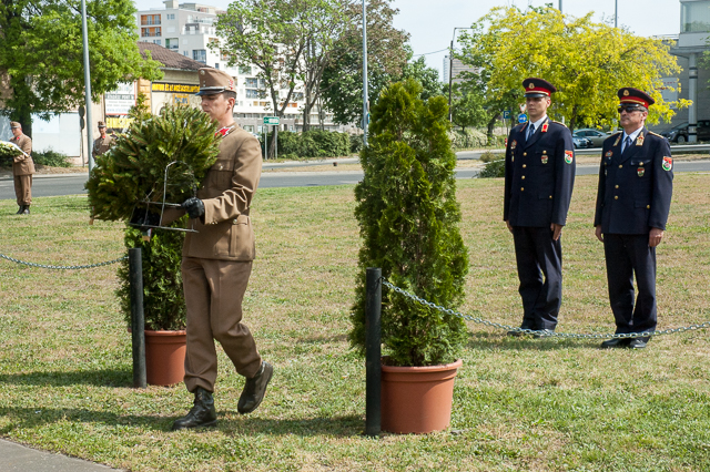 A vers után katonai tiszteletadással a megemlékezés koszorúit helyezték el: